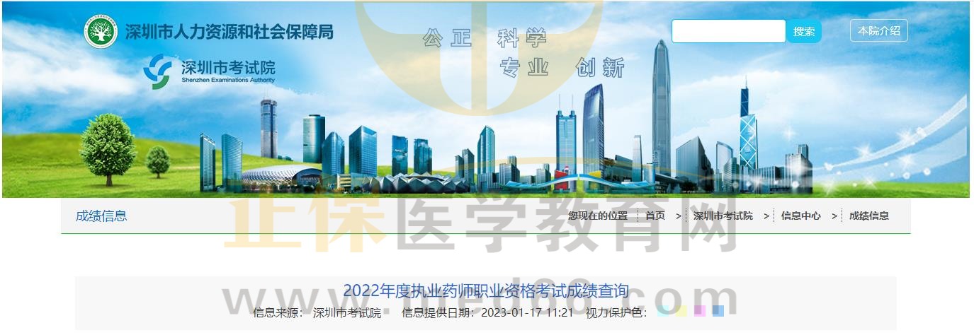 深圳2022年度執(zhí)業(yè)藥師職業(yè)資格考試成績(jī)查詢