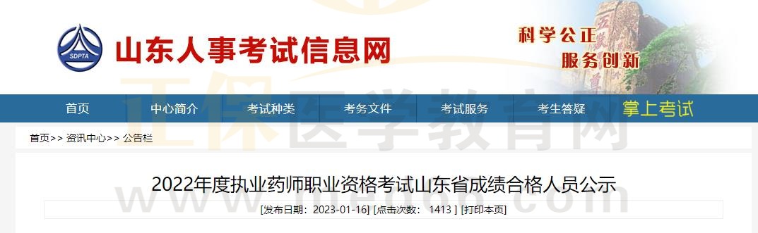 2022年度執(zhí)業(yè)藥師職業(yè)資格考試山東省成績合格人員公示