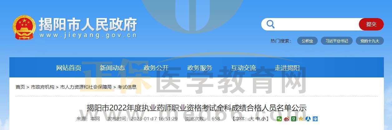 廣東揭陽(yáng)市2022年度執(zhí)業(yè)藥師職業(yè)資格考試全科成績(jī)合格人員名單公示