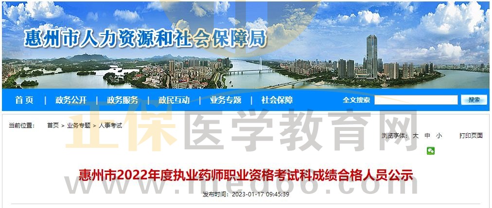 廣東惠州市2022年度執(zhí)業(yè)藥師職業(yè)資格考試科成績合格人員公示