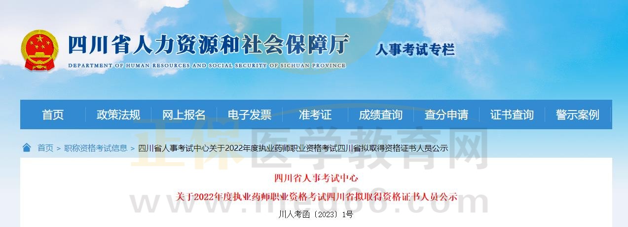 關(guān)于2022年度執(zhí)業(yè)藥師職業(yè)資格考試四川省擬取得資格證書人員公示