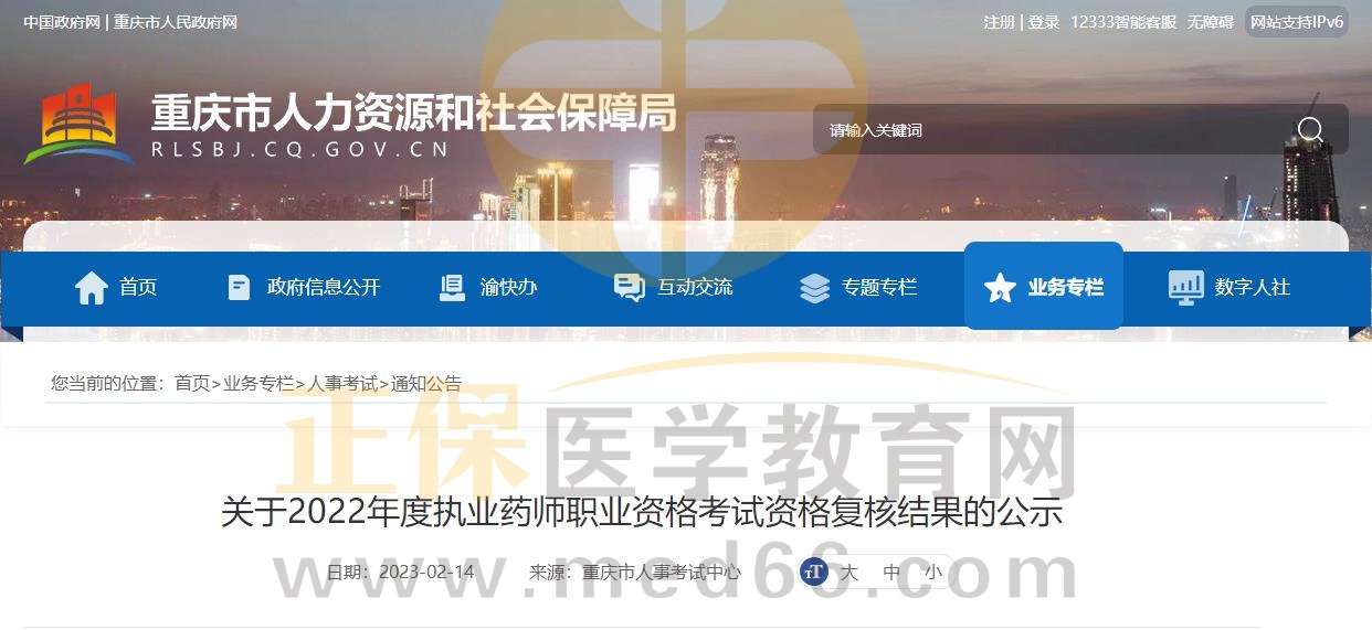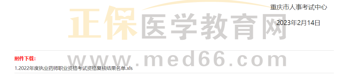 2022年度執(zhí)業(yè)藥師職業(yè)資格考試資格復(fù)核結(jié)果名單(見(jiàn)重慶市人力資源和社會(huì)保障局)。