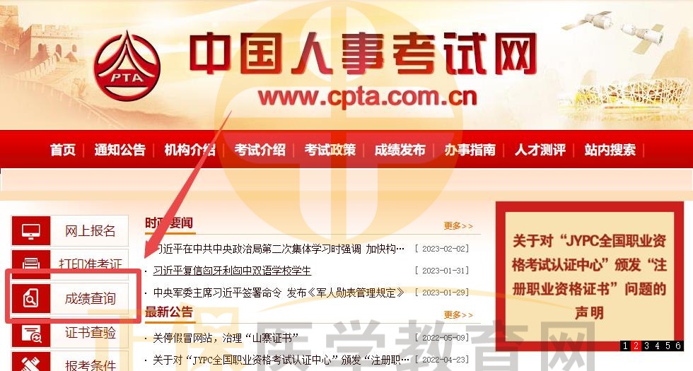 中國人事考試網(wǎng)在2023年1月16日開通2022年執(zhí)業(yè)藥師成績查詢入口,截圖如下: