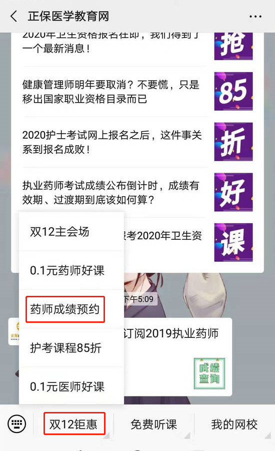 2019年執(zhí)業(yè)藥師考生最關注的是成績什么時候公布,為方便考生快速查成績,現在可以訂閱醫(yī)學教育網微信提醒,一鍵訂閱,自動提醒,不用您在電腦前苦苦刷新中國人事考試網了,只要一鍵訂閱,成績公布時,微信自動收到成績查詢提醒,下面來看看如何微信訂閱2019執(zhí)業(yè)藥師考試成績查詢吧。