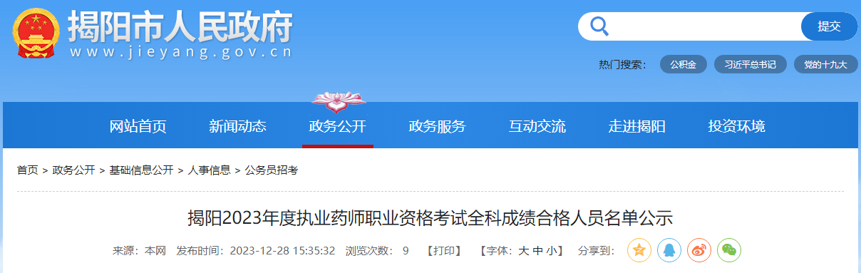 【廣東揭陽】2023年度執(zhí)業(yè)藥師職業(yè)資格考試全科成績合格人員名單公示