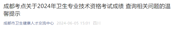 2024年衛(wèi)生資格考試成績查詢倒計時,為了方便考生順利查詢成績,成都考點做以下溫馨提示:
