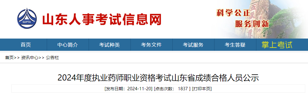 【山東】2024年度執(zhí)業(yè)藥師考試山東省成績合格人員公示