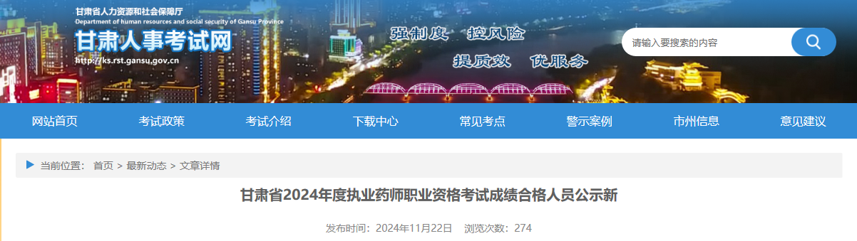 【甘肅】2024年度執(zhí)業(yè)藥師職業(yè)資格考試成績合格人員公示
