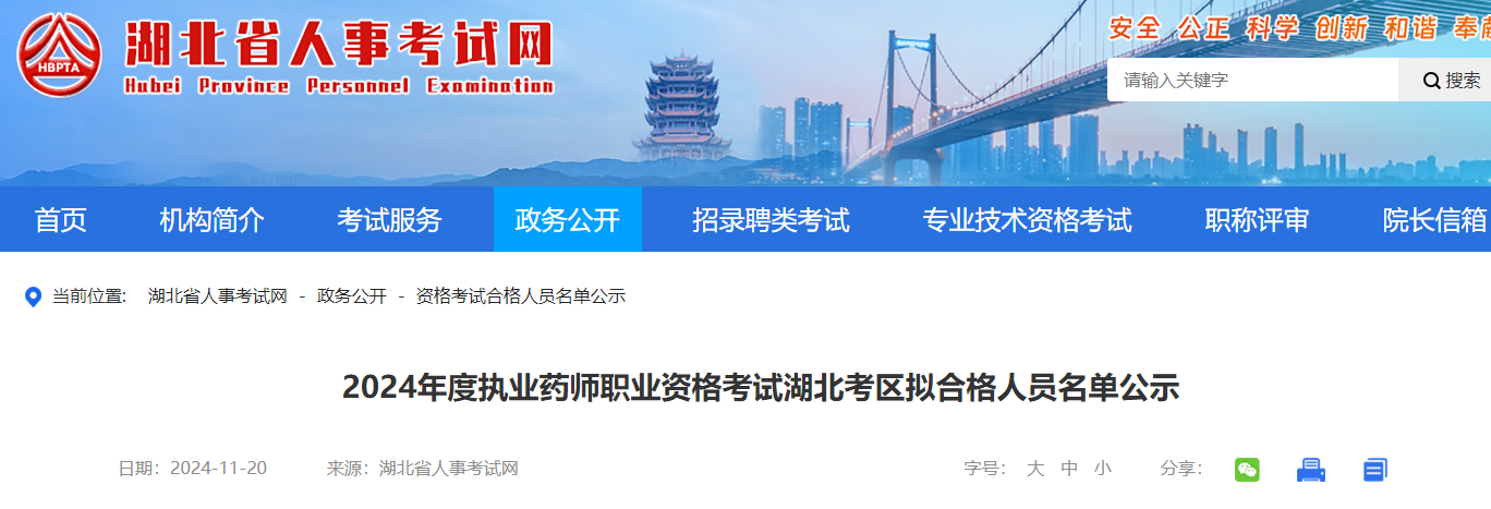 【湖北】2024年執(zhí)業(yè)藥師考試湖北考區(qū)擬合格人員名單公示