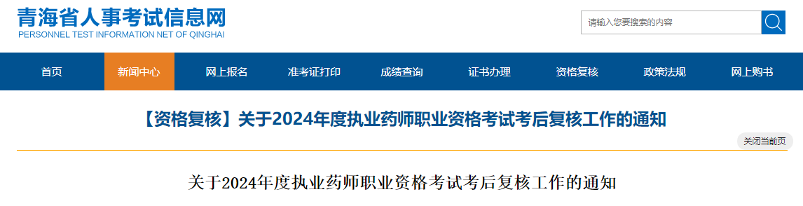 【青?!?024年度執(zhí)業(yè)藥師職業(yè)資格考試考后復(fù)核工作的通知
