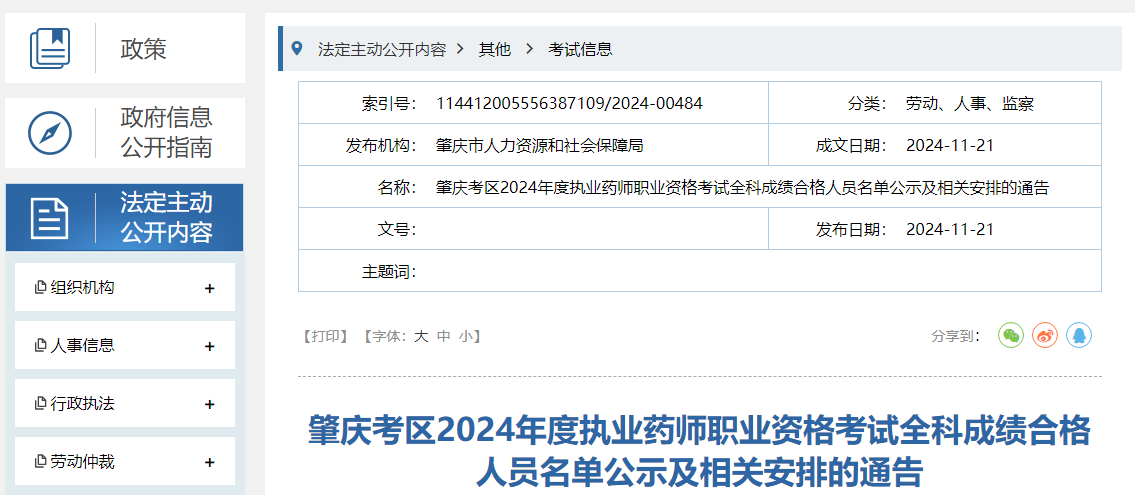 【廣東肇慶】2024年執(zhí)業(yè)藥師考試全科成績合格人員名單公示及相關(guān)安排的通告