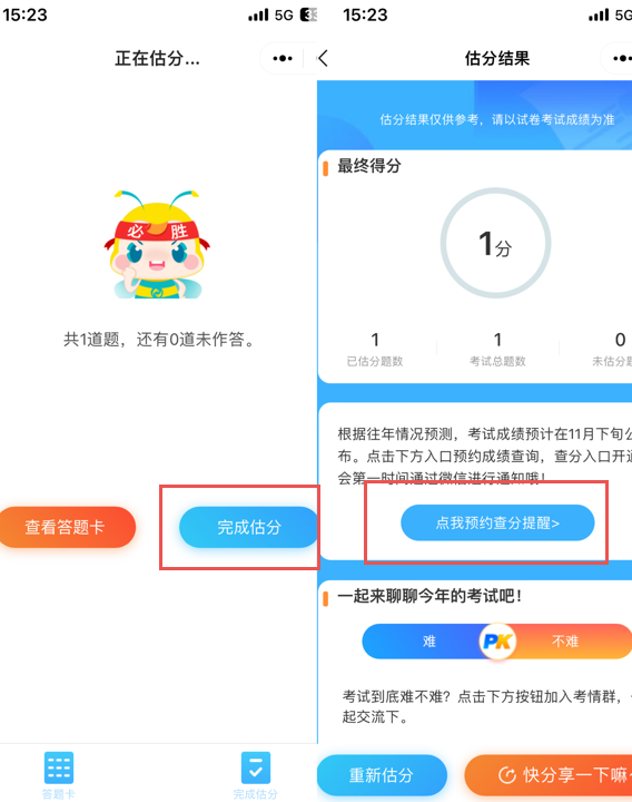 二、手機(jī)端用戶:點擊"開始估分>",即可進(jìn)入小程序開始估分啦!