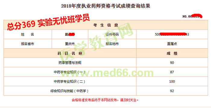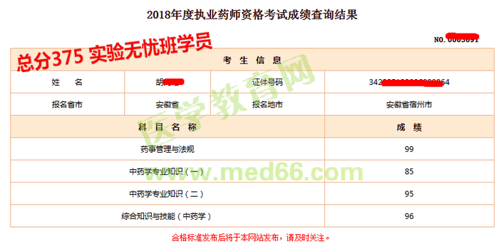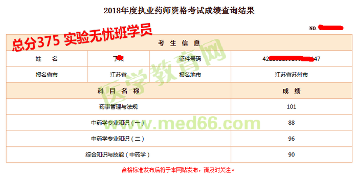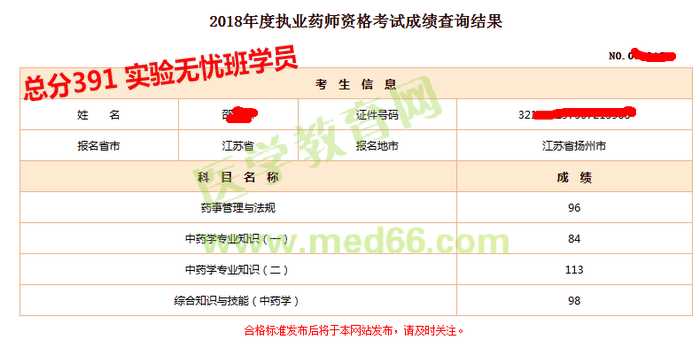 千呼萬喚!2018年執(zhí)業(yè)藥師成績查詢終于開始了!醫(yī)學(xué)教育網(wǎng)學(xué)員接連發(fā)來喜報,順利直達2018年執(zhí)業(yè)藥師考試!一年過四科也就罷了,這批考生還都是高分直達!全體學(xué)員單科成績平均分達96+!大家的努力都得到了回報!