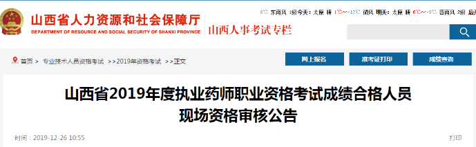 緊急!山西省發(fā)布2019年執(zhí)業(yè)藥師成績合格人員 現(xiàn)場資格審核公告!