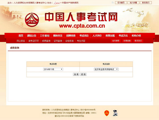 成績公布后,考生可以登錄中國人事考試網(wǎng)通過成績查詢功能進(jìn)行考試成績查詢;選擇考試年度和考試名稱后,點擊選擇按鈕,如下圖所示: