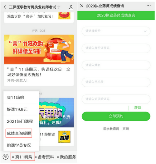 2020年執(zhí)業(yè)藥師考試成績預(yù)計在12月底公布,你想要第一時間查到自己的成績嗎?醫(yī)學(xué)教育網(wǎng)為大家提供成績預(yù)約入口,在成績公布后及時通知到你哦!還在等什么?來預(yù)約吧!