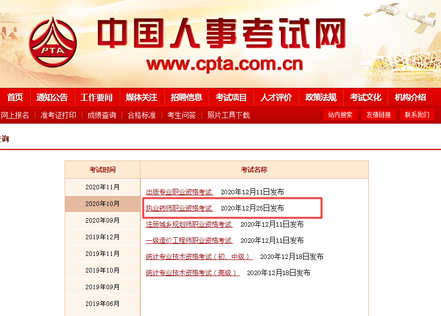 執(zhí)業(yè)藥師成績(jī)查詢官方網(wǎng)站:中國(guó)人事考試網(wǎng)