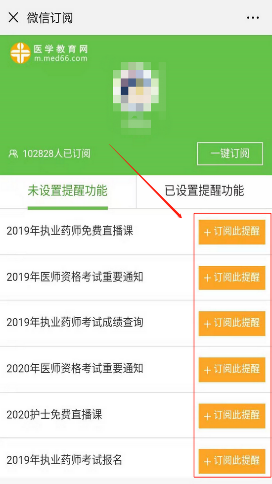 3. 訂閱"2019執(zhí)業(yè)藥師考試成績查詢"提醒功能