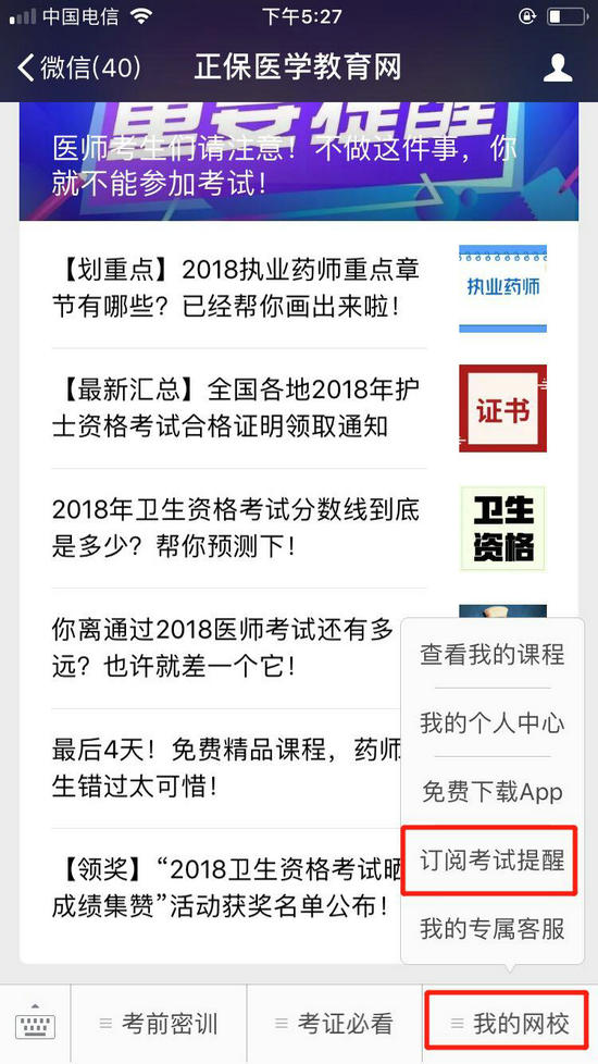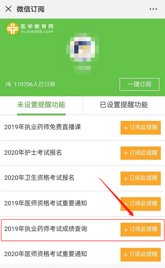 3. 訂閱"2019執(zhí)業(yè)藥師考試成績查詢"提醒功能