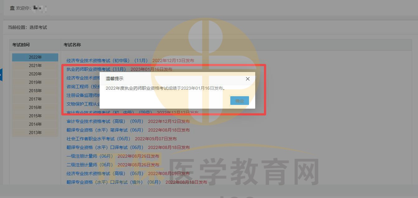 2022年執(zhí)業(yè)藥師成績(jī)查詢流程