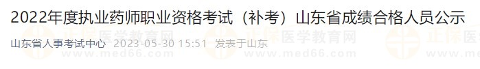 2022年度執(zhí)業(yè)藥師職業(yè)資格考試(補考)山東省成績合格人員公示