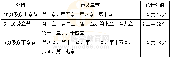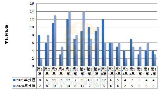 從2021年的考試題目可以看出,17個章節(jié)的分值相比以前更均勻了,沒有出現(xiàn)20分以上的章節(jié),也沒有出現(xiàn)1分甚至0分的章節(jié),我們可以分為三個檔次“10分及以上章節(jié)”“5——10分章節(jié)”“5分及以下章節(jié)”。