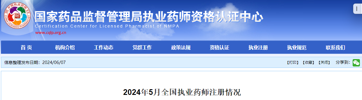 2024年5月全國(guó)執(zhí)業(yè)藥師注冊(cè)環(huán)比減少685人