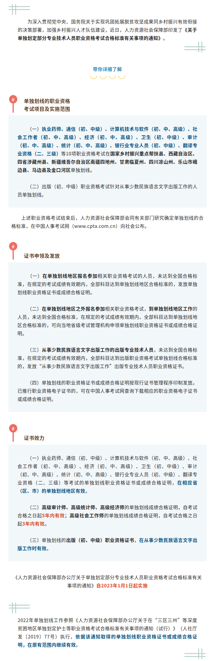 執(zhí)業(yè)藥師職業(yè)資格考試納入國家鄉(xiāng)村振興重點幫扶縣單獨劃線(正安縣被列為執(zhí)業(yè)藥師資格考試單獨劃線地區(qū))。職業(yè)資格考試結(jié)束后,人力資源和社會保障部會同有關(guān)部門研究確定單獨劃線的合格標準,在中國人事考試網(wǎng)向社會公布。