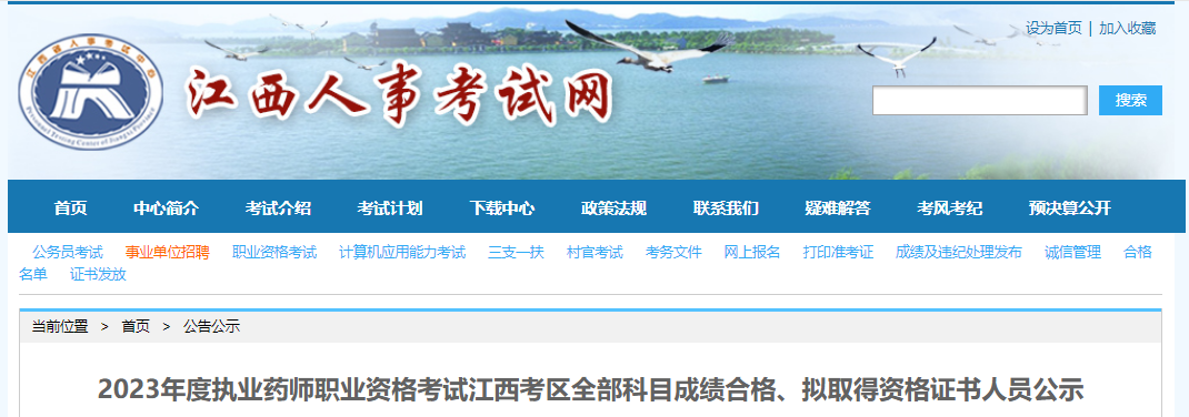 【江西】2023年執(zhí)業(yè)藥師考試全部科目成績合格、擬取得資格證書人員公示