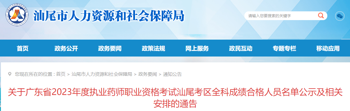 【廣東汕尾】2023年執(zhí)業(yè)藥師考試全科成績合格人員名單公示及證書發(fā)放通知