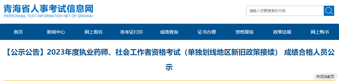 【青?!?023年執(zhí)業(yè)藥師考試、社會工作者資格考試(單獨(dú)劃線地區(qū)新舊政策接續(xù))成績合格人員公示