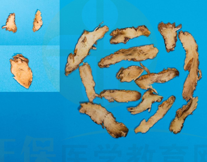 知母肉(光知母):已去凈外皮,表面黃白色,有扭曲的溝紋,有的可見(jiàn)葉痕及根痕。