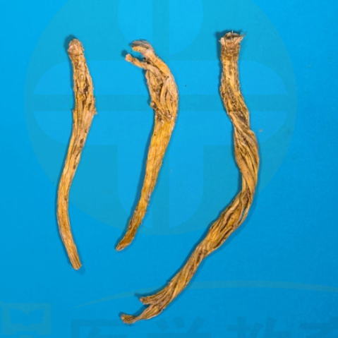 秦艽:呈類圓柱形,上粗下細(xì),扭曲不直。表面黃棕色或灰黃色,有縱向或扭曲的縱皺紋,頂端有殘存的莖基及纖維狀葉鞘。質(zhì)硬而脆,易折斷,切斷面略顯油性,皮部黃色或棕黃色,木部黃色。氣特異,味苦、微澀。
