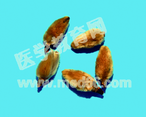 呈長卵形,似毛筆頭,基部常具短梗,梗上有類白色點(diǎn)狀皮孔。苞片外表面密被灰白色或灰綠色有光澤的長茸毛,內(nèi)表面類棕色,無毛。除去花被,雄蕊和雌蕊多數(shù),螺旋狀排列。體輕,質(zhì)脆。氣芳香,味辛涼而稍苦。