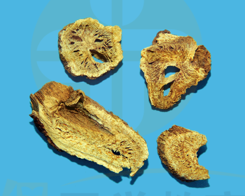 呈圓柱形或半圓柱形。斷面灰褐色至暗褐色,周邊灰黃色或淺棕黃色,形成層環(huán)棕色,有放射狀紋理及散在的褐色點(diǎn)狀油室。氣香特異,味微苦。