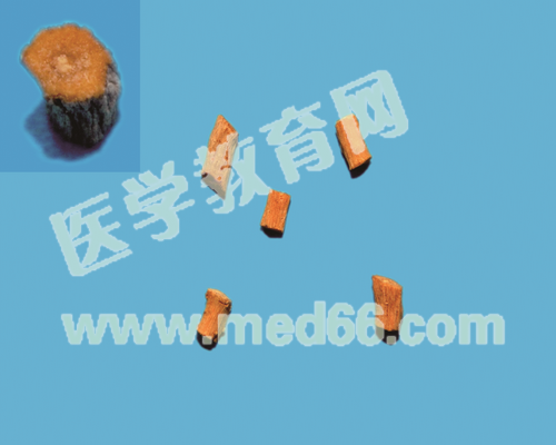 藥材呈細長圓柱形,挺直或稍彎曲。表面灰黃色或淡棕色,有微扭曲的細縱皺紋、排列稀疏的側(cè)根痕和橫長皮孔樣突起,質(zhì)硬脆,易折斷,受潮后變軟,斷面平坦,淡棕色,略呈角質(zhì)樣而油潤,中心維管束木質(zhì)部較大,黃白色,其外周散有多數(shù)黃白色點狀異型維管束,習(xí)稱“筋脈點”,斷續(xù)排列成2~4輪。氣微,味微甜而稍苦澀。