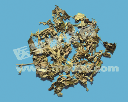 藥材多皺縮、破碎,有短柄。完整葉片展平后呈卵狀橢圓形,羽狀深裂,裂片橢圓狀披針形,邊緣有不規(guī)則的粗鋸齒;上表面灰綠色或深黃綠色,有稀疏的柔毛和腺點(diǎn);下表面密生灰白色絨毛。質(zhì)柔軟。氣清香,味苦。