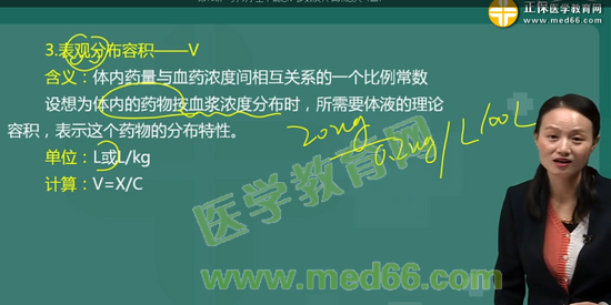 考點1:關(guān)于藥物動力學參數(shù)表觀分布容積(V)的說法正確的是:表觀分布容積是體內(nèi)藥量與血藥濃度間的比例常數(shù),單位通常是L或L/kg
