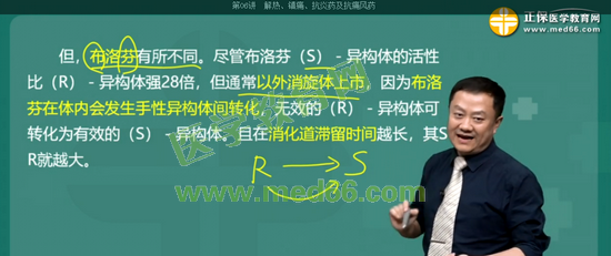 布洛芬S型異構(gòu)體的活性比R型異構(gòu)體強28倍,但布洛芬通常以外消旋體上市其原因是: 布洛芬R型異構(gòu)體在體內(nèi)會轉(zhuǎn)化為S型異構(gòu)體