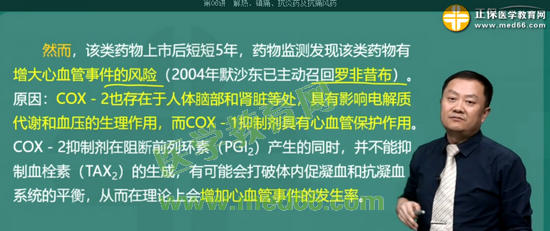 考點15:選擇性COX-2抑制劑羅非昔產(chǎn)生心血管不反應的原因是: 阻斷前列環(huán)素(PGI2)的生成但不能抑制血栓素(TXA2)的生成