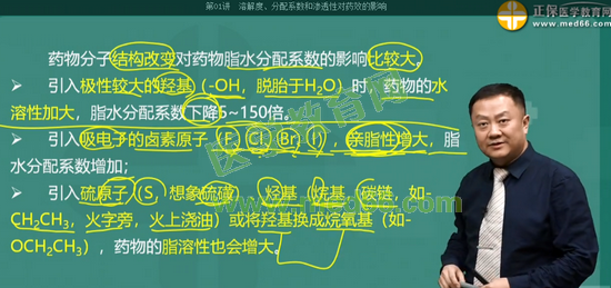 可影響分子間的電荷分布、脂溶性及藥物作用時間的吸電子基團是: 鹵素