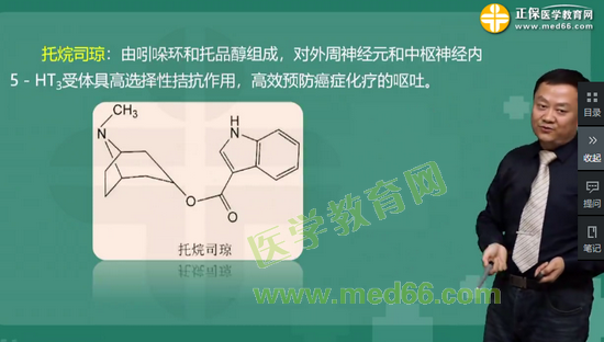 考點44:分子中含有吲哚環(huán)和托品醇,對中樞和外周神經(jīng)5-HT3受體具有高選擇性拮抗作用的藥物是