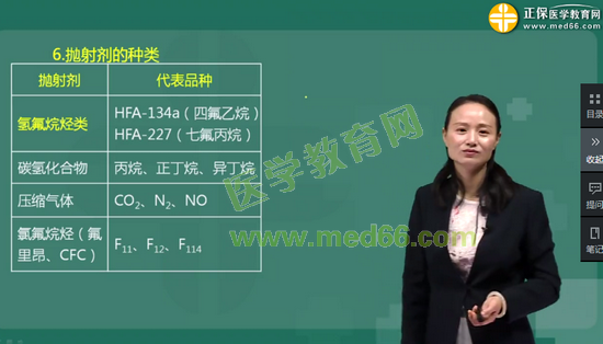 考點50:拋射劑是氣霧劑噴射藥物的動力,常用作拋射劑的是:四氟乙烷(HFA-134a)