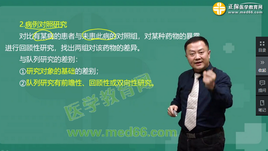 考點60:對比患有某疾病的患者組與未患此病的對照組 對某種藥物的暴露進行回顧性研究,找出兩組對該藥物的差異,這種研究方法屬于:病例對照研究