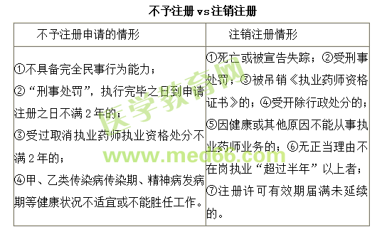 - · 執(zhí)業(yè)藥師法規(guī):不予注冊(cè)和注銷(xiāo)注冊(cè)對(duì)比記憶