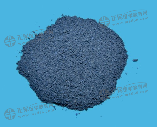 為深藍色的粉末,體輕,易飛揚;或呈不規(guī)則多孔性的團塊、顆粒,用于搓捻即成細末。微有草腥氣,味淡。取藥材少量,用微火灼燒,有紫紅色煙霧發(fā)生。取本品少量,滴加硝酸,產(chǎn)生氣泡并顯棕紅色或黃棕色。