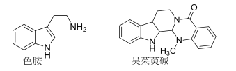 (2)色胺吲哚類:結構較簡單,含有色胺部分。如吳茱萸堿等