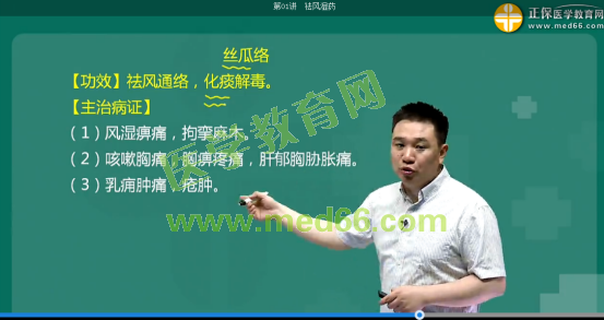 考點(diǎn)4、某女,40歲,患風(fēng)濕痹痛3年,近日觀乳癰腫痛,治當(dāng)祛風(fēng)通絡(luò),化痰解毒,宜選用的藥是絲瓜絡(luò)。