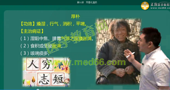 考點(diǎn)5、某醫(yī)師治濕阻中焦證,善用厚樸,此藥味苦辛、性溫,其主要功效是燥濕、行氣。