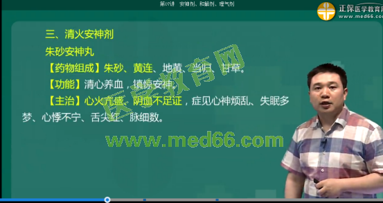 考點(diǎn)21、醫(yī)師治療心神煩亂、失眠多夢、心悸不寧時,每選朱砂安神丸,此因該成藥除鎮(zhèn)驚安神外,又能清心養(yǎng)血。